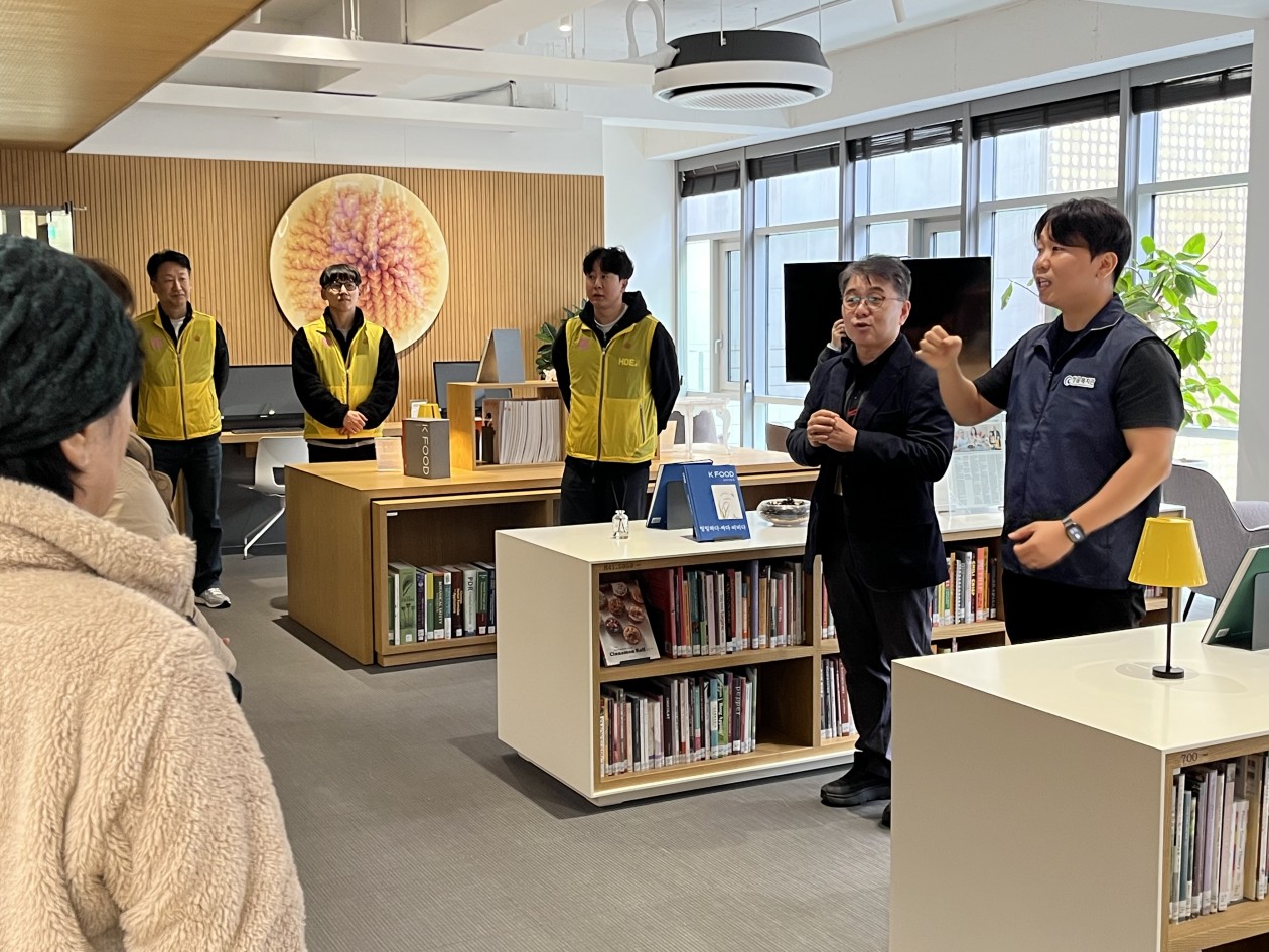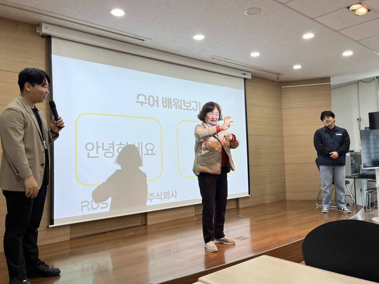 청음복지관 수어교육 및 회사견학(10/31) 페이지 정보 작성자 관리자 조회 30회 작성일 25-11-24 14:38 목록 본문 청음복지관 수어교육을 진행하였으며, 회사생활과 공간이 궁금한 청각장애우분들에게 회사 소개, 견학 프로그램을 제공하여 드렸습니다.